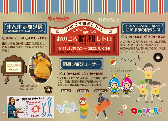 ゴールデンウィークイベント情報 【おのころ昭和レトロ】2022年4月28日